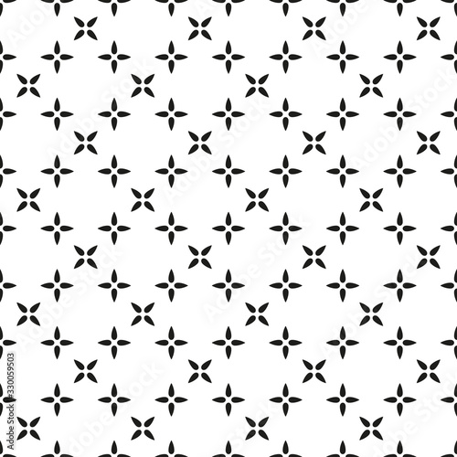 Abstract geometric diagonal seamless pattern. Black minimalistic vector flowers with four petals on white background. Simple vector illustration. Polka dot design for printing on textile, fabric