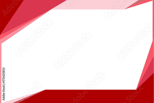 Abstract geometric frame with overlapping red and pink shapes surrounding a white rectangular space.
