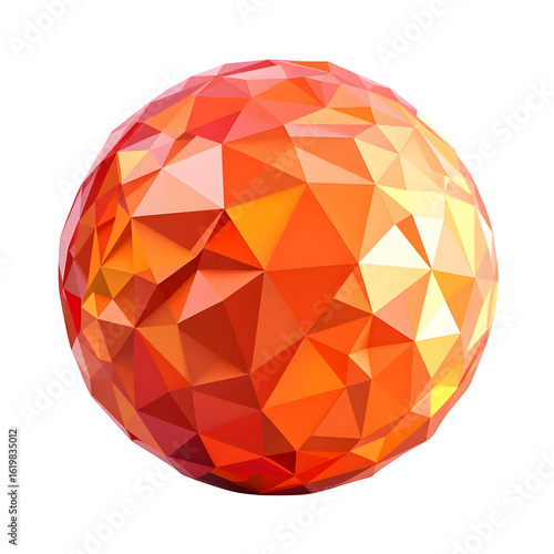 Abstract geometric orange sphere with polygonal facets creating a modern and decorative design element isolated on transparent background