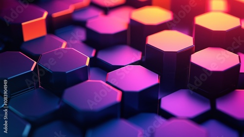 Abstract Geometric Pattern of Colorful Hexagons with a Futuristic Look, Vibrant Lighting and Shadows, Perfect for Backgrounds and Digital Designs