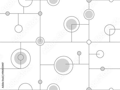 Abstract geometric pattern of interconnected gray circles and lines