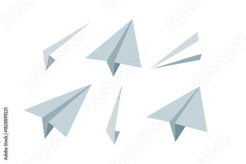 Abstract geometric pattern of light blue and white origami paper planes