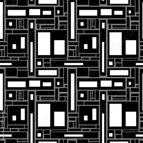 Abstract geometric seamless pattern. Black and white blocks on gray background Vector illustration.
