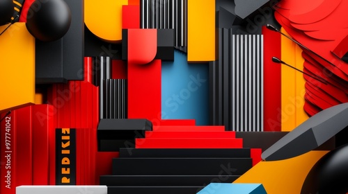 Abstract Geometric Shapes in Red, Black, Yellow, and Blue.