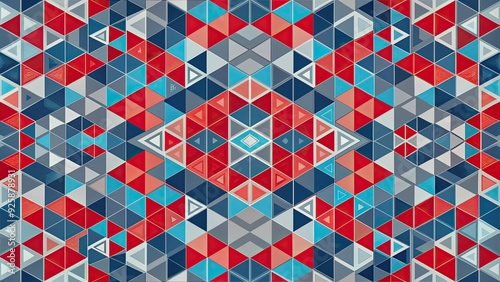 Abstract geometric shapes in red, blue, and gray patterned arrangement, abstract, geometric, shapes,red, blue, gray