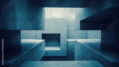 Abstract geometric structures with concrete textures and natural light