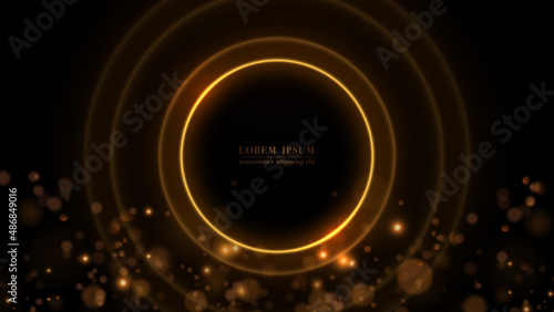 Abstract glow circle with bokeh lights on dark background. Vector illustration