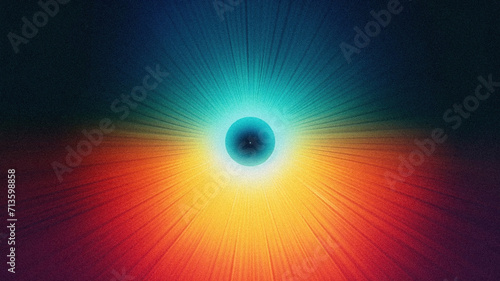Abstract glowing circular pattern of orange, red, white, teal on dark background, gradient granular effect, background, wallpaper, poster