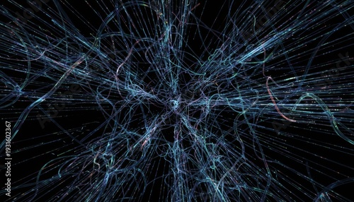 Abstract Glowing Digital Network Lines Radiating On Dark Background Representing Data Flow, AI, And Interconnected Technology