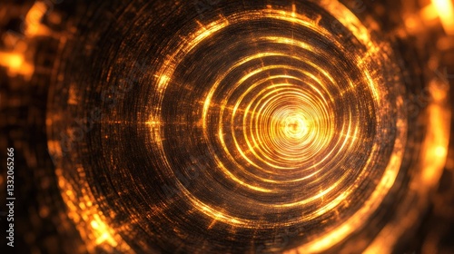 Abstract glowing spiral tunnel with radiant golden light and intricate circular patterns in a mesmerizing design