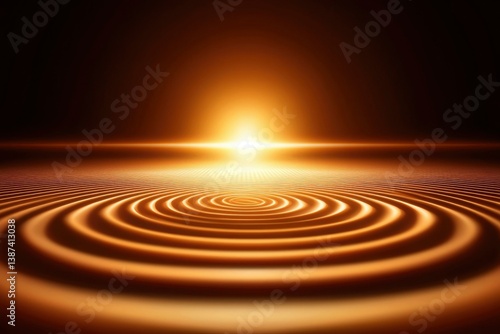 Abstract golden horizon reflected in concentric water ripples for spirituality use