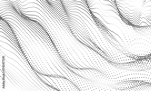 Abstract gradient dynamic wave of particles. Network of bright points or dots. Big data. Digital background. Vector dissolve halftone background