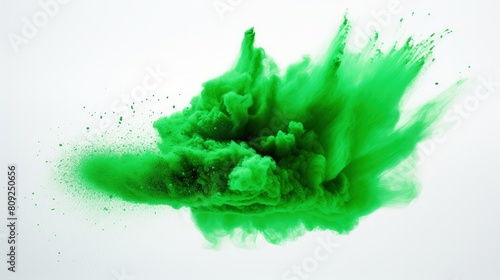 Abstract Green Paint Splatters on White Wall