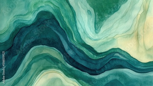 Abstract Green Watercolor Waves Background