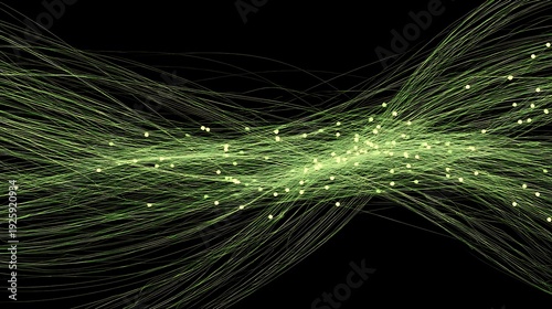 Abstract Green Wave of Light Strings with Dots in Black Stage