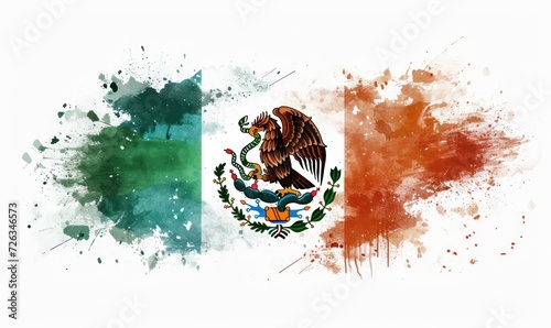 Abstract grunge watercolor painted flag of Mexico. Template for national holiday background.