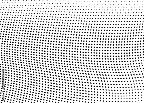 Abstract halftone wave dotted background. Futuristic twisted grunge pattern, dot, circles. Vector modern optical pop art texture for posters, business cards, cover, labels mock-up, stickers layout