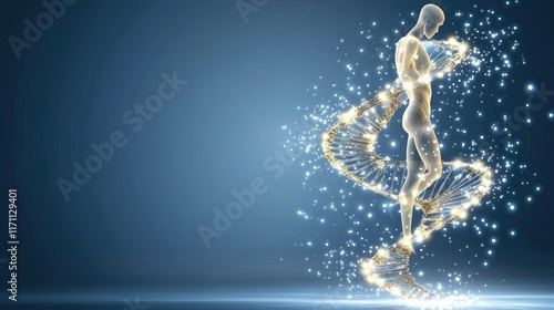 Abstract human silhouette showcases digital DNA patterns, symbolizing medical science advancement in a vibrant blue setting