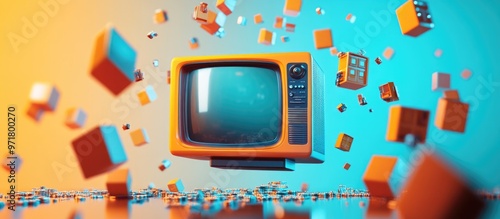 Abstract illustration of a three dimensional television showcasing technology concepts Original 3D rendering