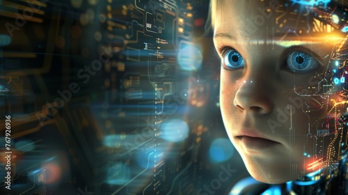 Abstract image showing luminous lines and patterns on a circuit board, representing advanced digital technology and data processing.