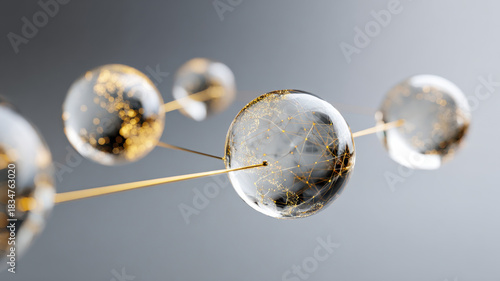 Abstract interconnected spheres with gold accents, evoking concepts of connection and network