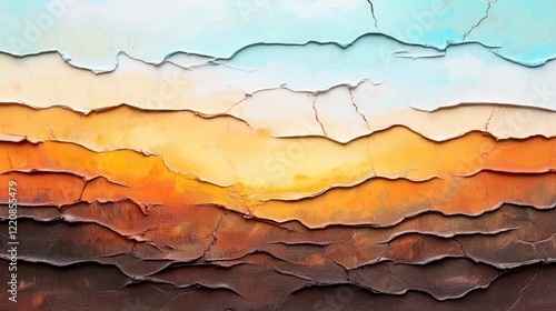 Abstract Landscape Painting with Vibrant Colors and Textured Layers