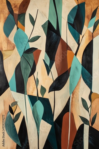 Abstract Leafy Design: Modern Art in Teal, Brown, and Cream - Perfect for Home Decor and Contemporary Wall Art