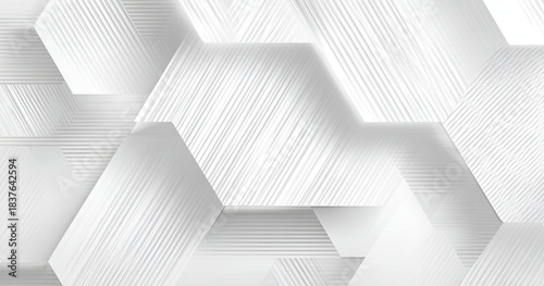 Abstract Light grey hexagons with textured surfaces, overlapping shadows