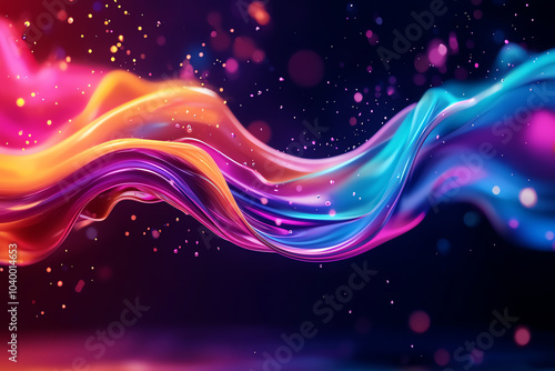 Abstract liquid splashes in a gradient of neon colors, vibrant and full of movement