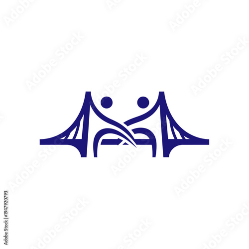 Abstract logo depicting stylized people forming a bridge, symbolizing connection, teamwork, community, and partnership on an isolated white background.