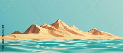 Abstract Low Poly Mountain and Ocean Landscape Design