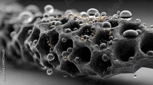 Abstract Macro View of Textured Surface with Bubbles and Depth
