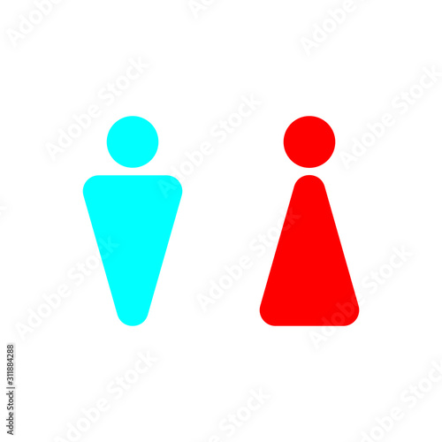 Abstract male and female symbols, blue and red isolated on white background. Toilet, wc or restroom icons. Gender concept.