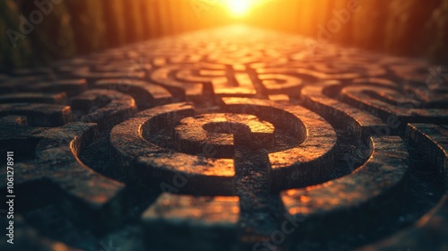 Abstract maze with highlighted path to center, [path to success], [visualizing overcoming obstacles in strategic planning]