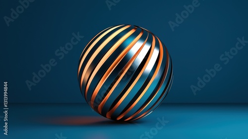 Abstract Metallic Sphere with Stripes on Blue Background