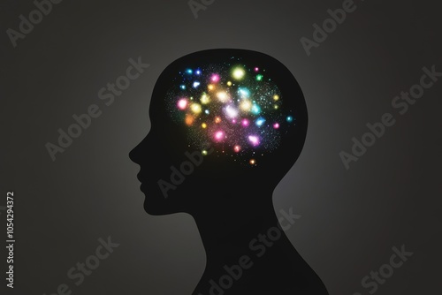Abstract mind concept with colorful glowing lights in silhouette head
