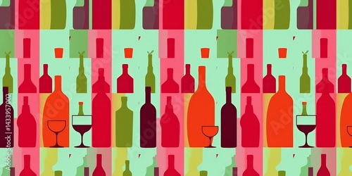 Abstract minimalist seamless pattern featuring silhouettes of bottles and glasses , minimalist, vector