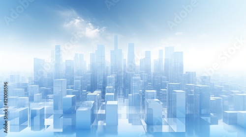 Abstract Modern Cityscape with Glass Buildings and Foggy Horizon