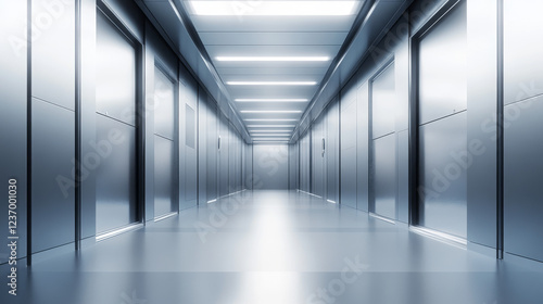 abstract modern futuristic hall with metal surface and simple geometric pattern 3d render illustration