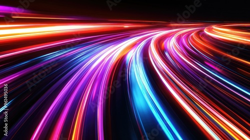 Abstract motion light trails with a modern, futuristic aesthetic, showcasing vibrant streaks against a dark backdrop.