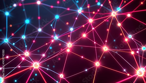Abstract Neon Network with Interconnected Lines and Glowing Nodes in 3D Illustration Perfect for Decoration Data Visualization Connectivity and Futuristic Technology