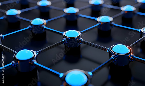 Abstract Network Connection with Glossy Blue Nodes and Black Background