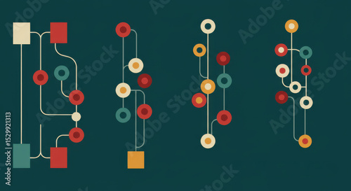 Abstract network diagrams with colorful nodes