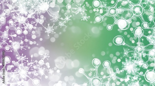 Abstract Network of Glowing Molecular Structures and Snowflakes