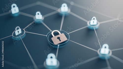 Abstract network security concept with padlock icons connected by lines.