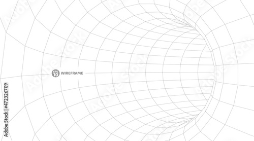 Abstract object in wireframe mesh tunnels. 3D illustration of a landscape concept. Digital cyberspace in the performance of lines and points. Isolated object. Data Array. Grid technology illustration