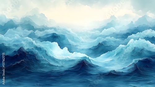 Abstract Ocean Wave Art: Calming Blue Sea Illustration for Artistic Background and Serene Desktop Wallpaper.