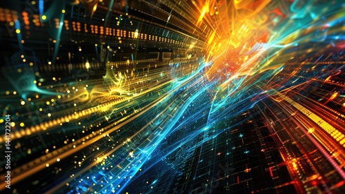 Abstract of digital shape or line and technological cyber style particle design connect in surreal electronic shape designing. High tech scenery express seamless pattern perfect for wallpaper. AIG53.