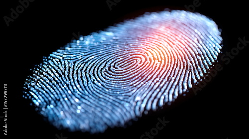 Abstract of glowing fingerprint with red light. Biometric security scan concept. Data protection and identity access.