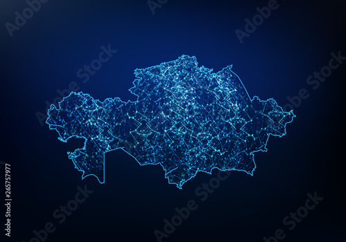 Abstract of kazakhstan map network, internet and global connection concept, Wire Frame 3D mesh polygonal network line, design sphere, dot and structure. Vector illustration eps 10.
